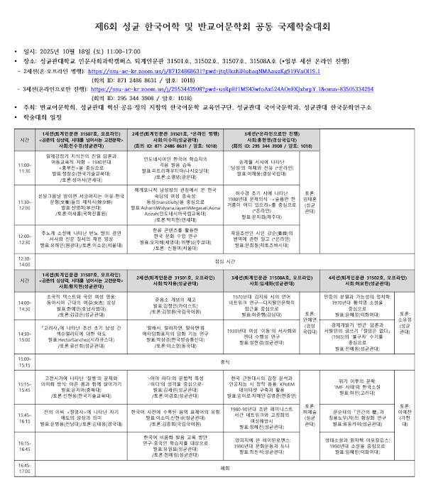 - μμΈμ 보: http://www.klbksk.com/wiki/index.php/Minmunhak_Colloquium202509